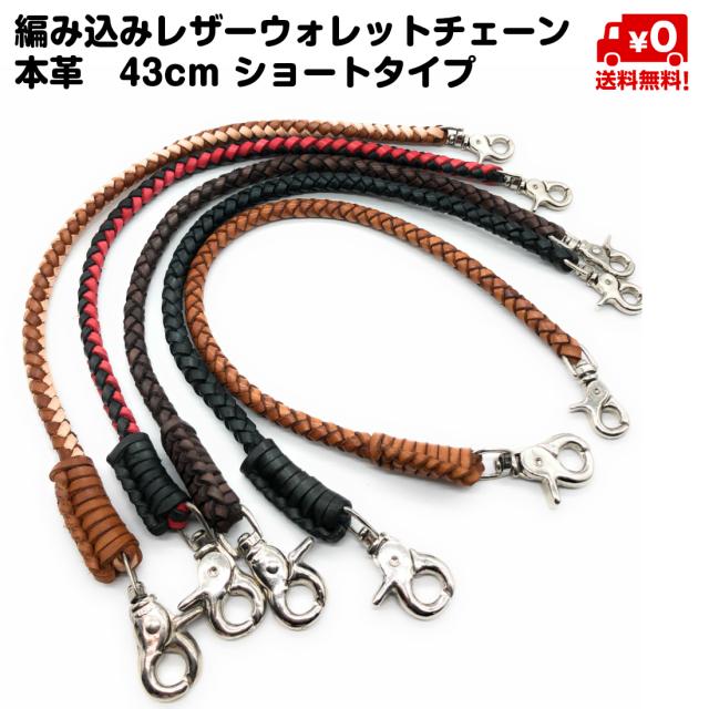 本革 手編み ウォレットチェーン 革 ショートタイプ 43cm レザー 財布 牛皮 バイカース ライダース 革ジャン ハンドメイド 送料無料