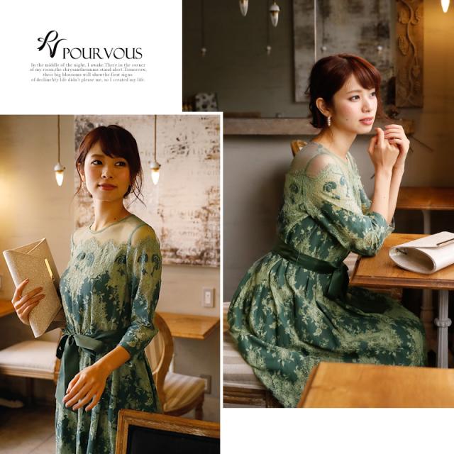 3037 パーティードレス ワンピース 結婚式 お呼ばれ ドレス 服装 フォーマルドレス 大人 フォーマル 服 上品 大きいサイズ ミセス 他と被らない 20代30代40代 春 夏 秋冬 パーティドレス 体型カバー ファッション 袖あり 袖付き 袖 レース 七分袖 激安 同窓会 成人式 韓国 冬