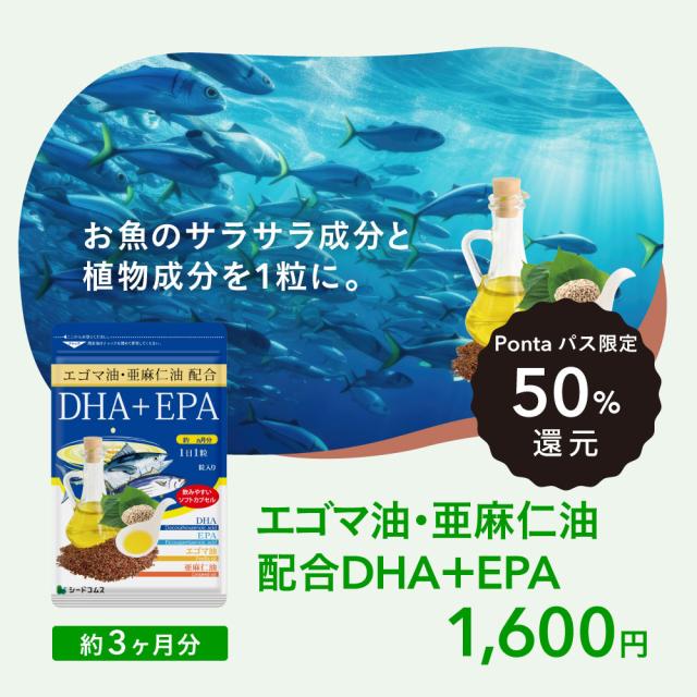 【Pontaパス限定50%還元】亜麻仁油 エゴマ油配合 贅沢なDHA+EPA 約3ヵ月分 オメガ3 αリノレン酸 サプリメント 健康食品