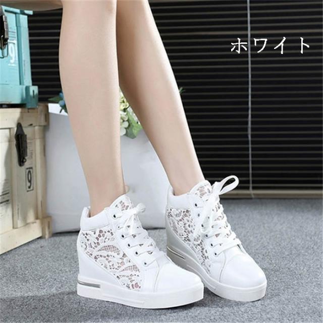 レディース 靴 スニーカー 厚底 インヒール スニーカー 白い靴スニーカー 厚底 カジュアル シューズ 編み上げ
