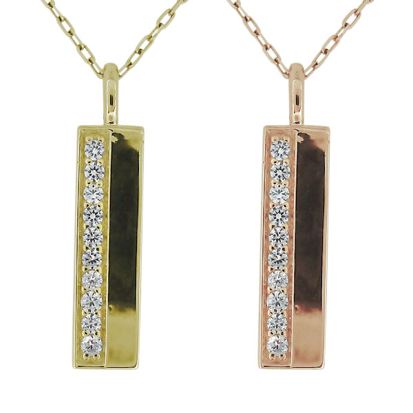 ネックレス ペア ダイヤモンド 18金 ユニセックス シンプル プレート ペンダント