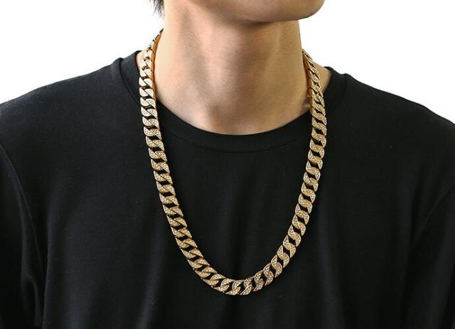 B系アクセの人気デザイン、マイアミキューバンリンクのチェーンネックレス。表面に埋め込まれたジルコニアが輝く、光沢のある太め幅。胸元でラグジュアリーかつ圧倒的な存在感を発揮します。