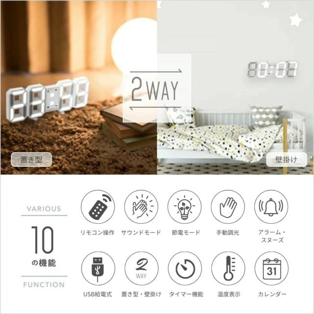 送料無料 デジタル時計 時計 壁掛け デジタル 置き時計 壁掛け時計 掛け時計 目覚まし時計 ライト おしゃれ かわいい 静か リモコン付き