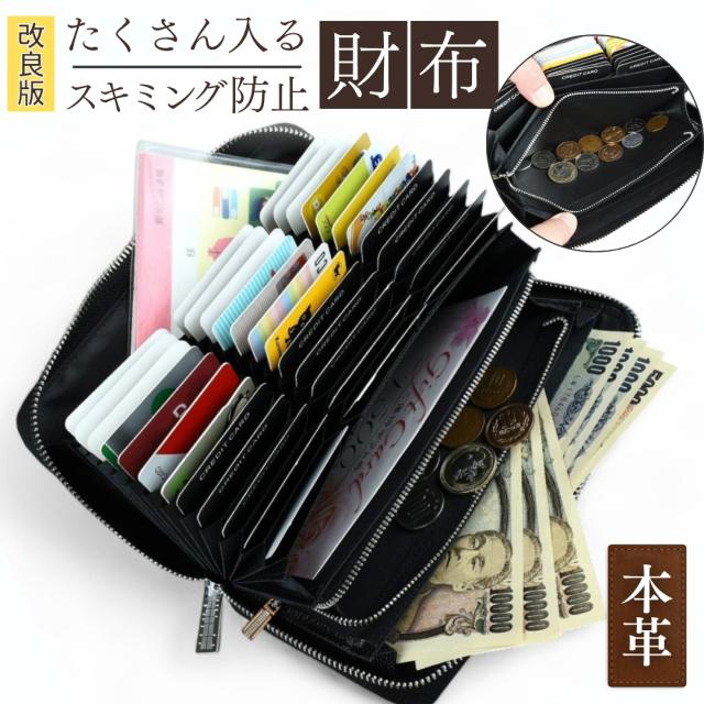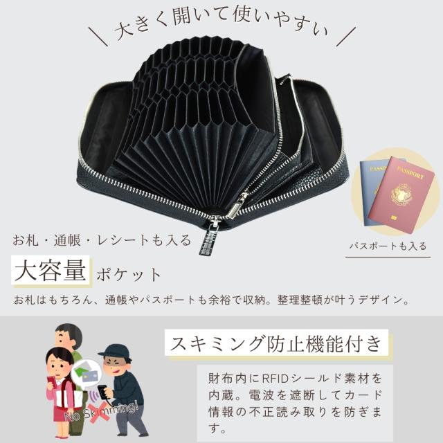 本革 長財布 カードケース カード入れ 大容量 カードがたくさん入る財布 小銭入れ付き じゃばら メンズ レディース ラウンドファスナー パスポートケース スキミング防止 Rfid カードホルダー プレゼント