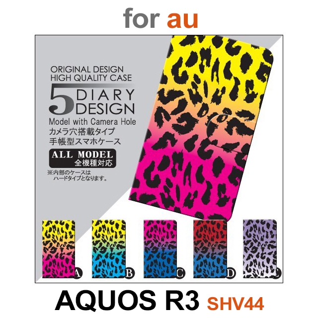 SHV44 ケース カバー スマホ 手帳型 au AQUOS R3 ヒョウ柄 dc-014
