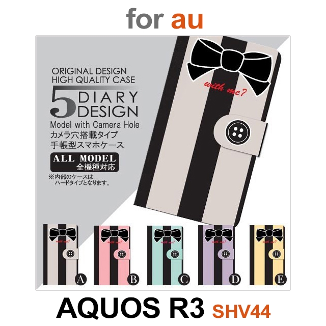 SHV44 ケース カバー スマホ 手帳型 au AQUOS R3 リボン ストライプ dc-037