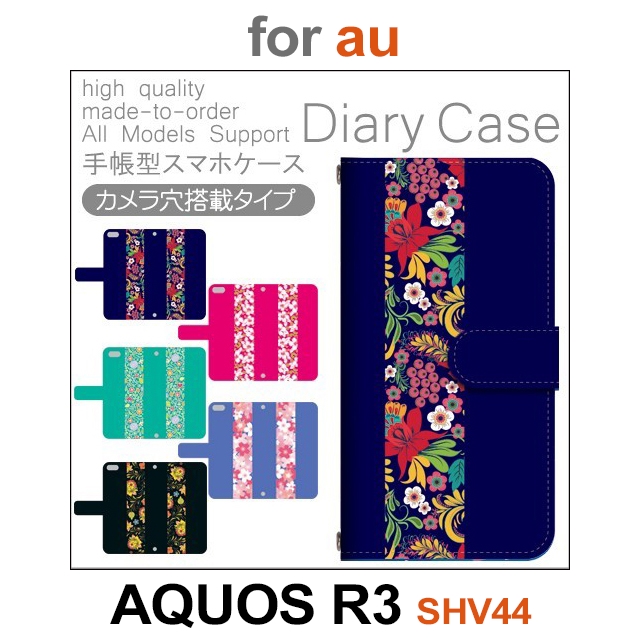 SHV44 ケース カバー スマホ 手帳型 au AQUOS R3 花柄 dc-804
