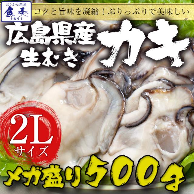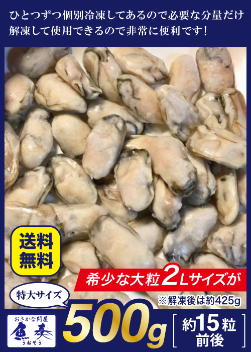 魚奏 広島産 剥き牡蠣 大粒 2Lサイズ 500g 解凍後約425g/15個前後 送料無料 かき カキ おためし ギフト 在宅