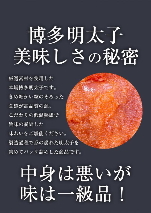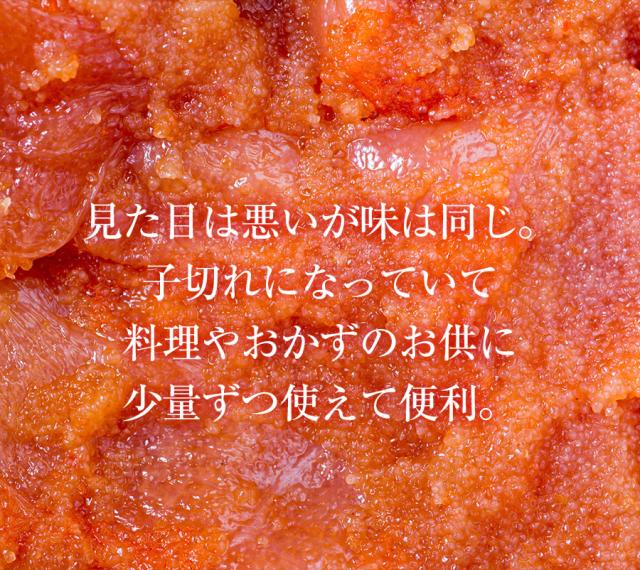 わけあり明太子の特別ご奉仕販売は、形は悪いですが味は一級品と遜色ありません。