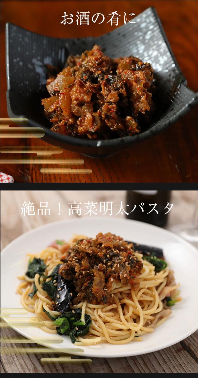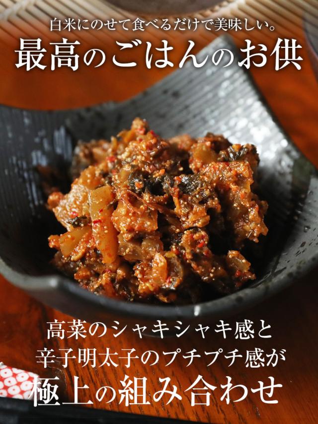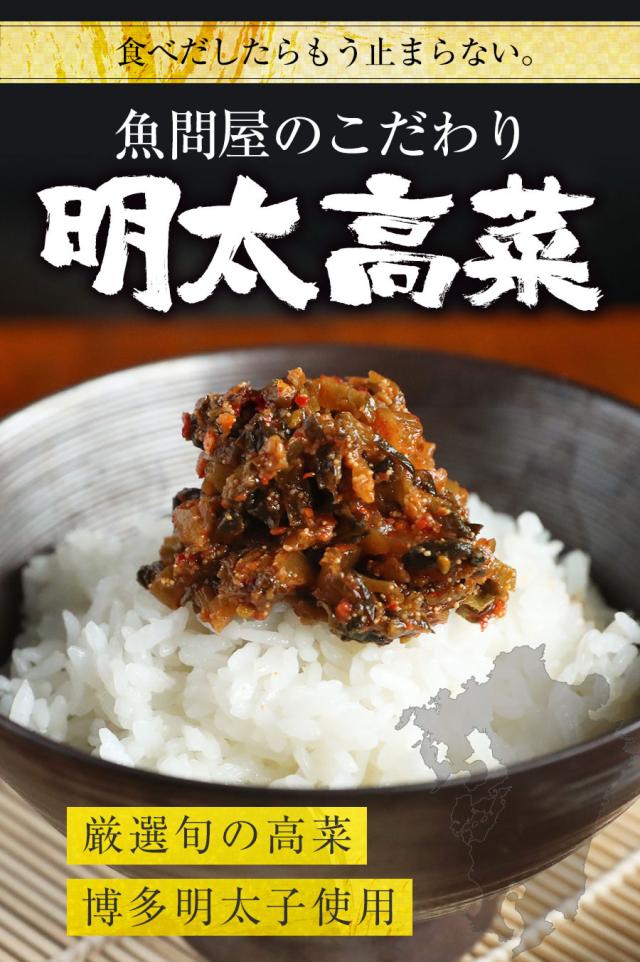 魚屋が素材、味にこだわりぬいて作った明太高菜です。