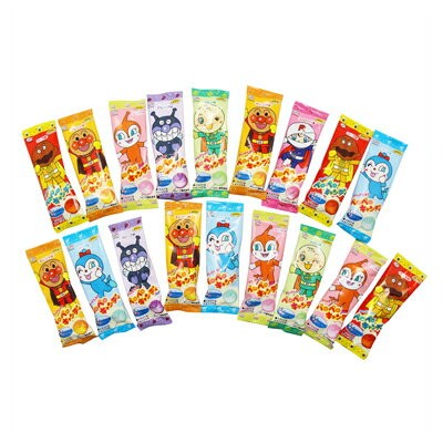 7種類の味が楽しめる、アンパンマンの顔型の棒つきキャンディです。より人気のキャラクターと味にリニューアルしました。(アンパンマン:みかん/ばいきんまん:ぶどう/ドキンちゃん:いちご/メロンパンナちゃん:白ぶどう/あかちゃんまん:もも/カレーパンマン:りんご/コキンちゃん:ラムネ)