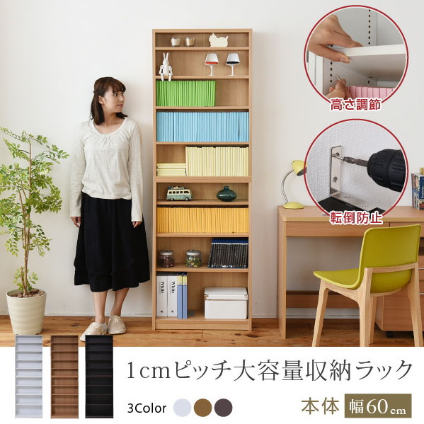 おしゃれ 本棚 薄型 幅60 大容量 1cmピッチ 収納 壁面収納 文庫本 ラック リビング キッズ 子供 木製