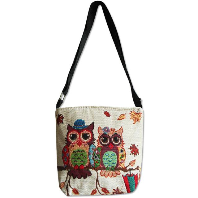 ふくろう フクロウ 送料無料 ショルダーバッグ ポシェット ゴブラン ミニバッグ 不苦労 お守り 敬老の日 贈り物 中高年 カップル 傘 紅葉