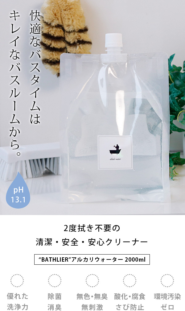 除菌 住宅用洗剤「BATHLIER」アルカリウォーター(2000ml詰替)【アルカリ電解水 アルカリ洗浄 クリーナー 除菌消臭 強アルカリ 二度拭き不要】