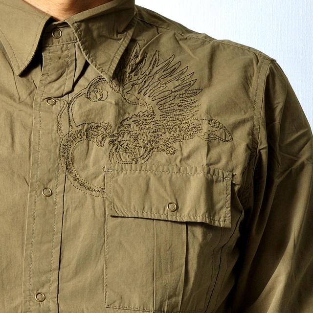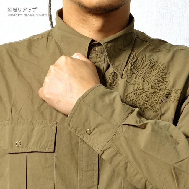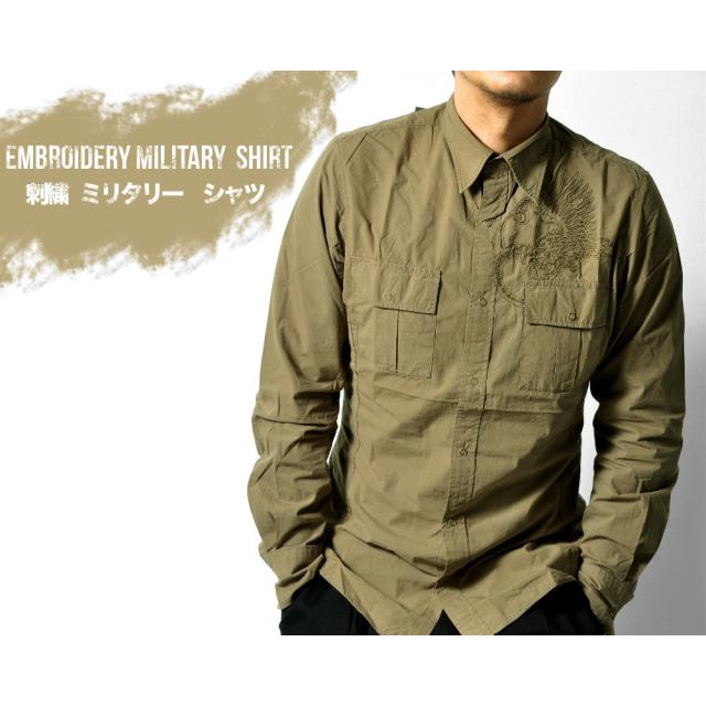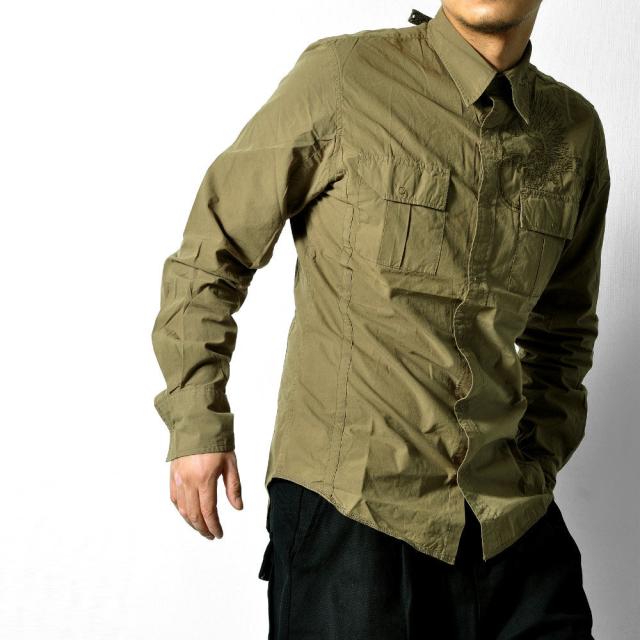 刺繍入り ミリタリー長袖シャツ メンズ トップス レディース[2色] #TS399 M便