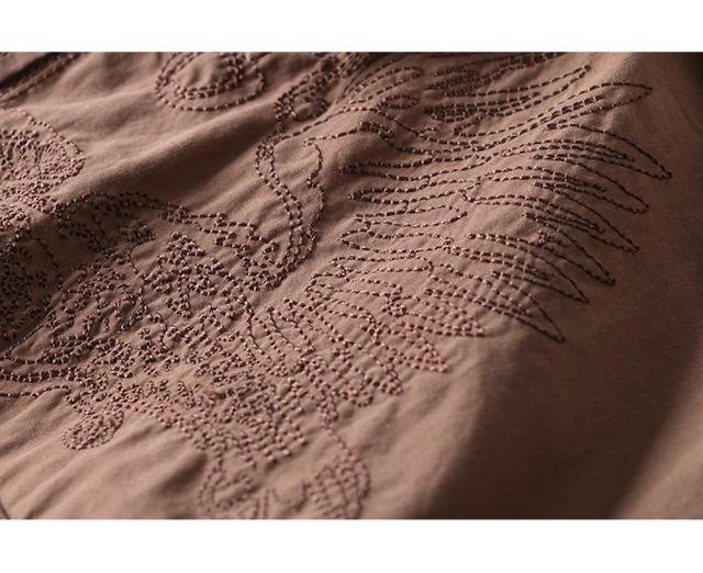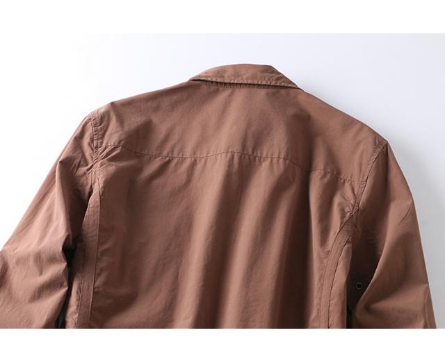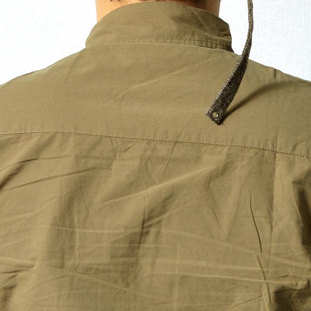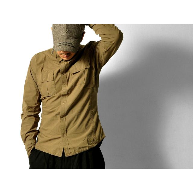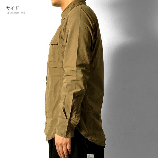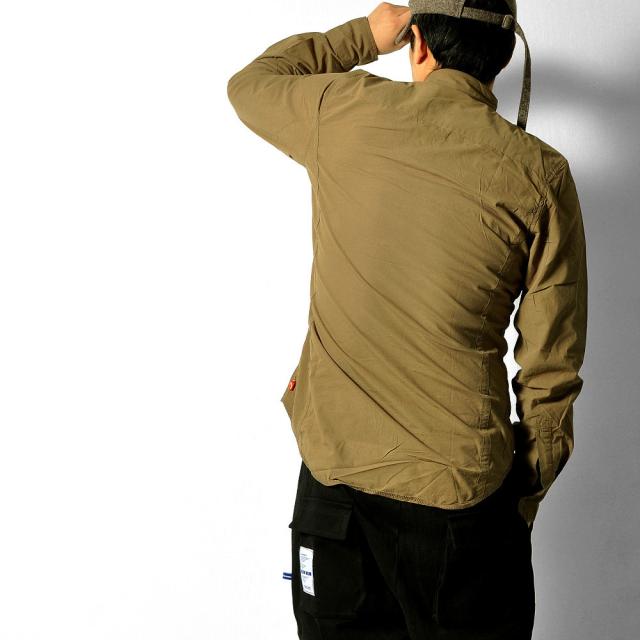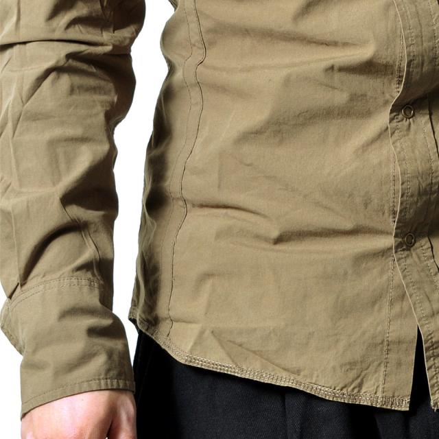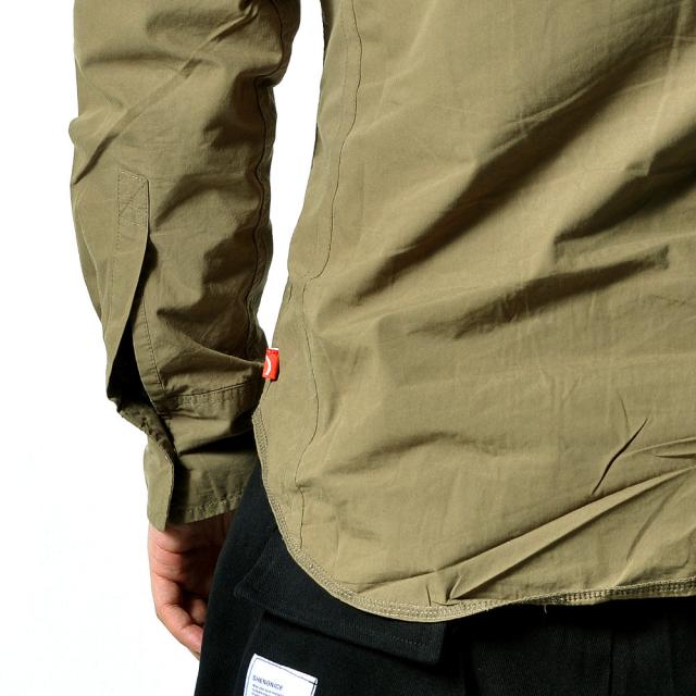 左胸に刺繍が施されたスナップボタン長袖シャツ脇下にはエアホールが施されています。