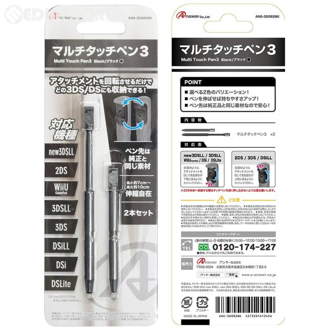 【新品】【お取り寄せ】[ACC][3DS] new3DSLL/3DSLL/3DS/2DS/DSiLL/Dsi/DSLite/WiiU対応 マルチタッチペン3(ブラック) アンサー(ANS-3D082BK)(20161225)