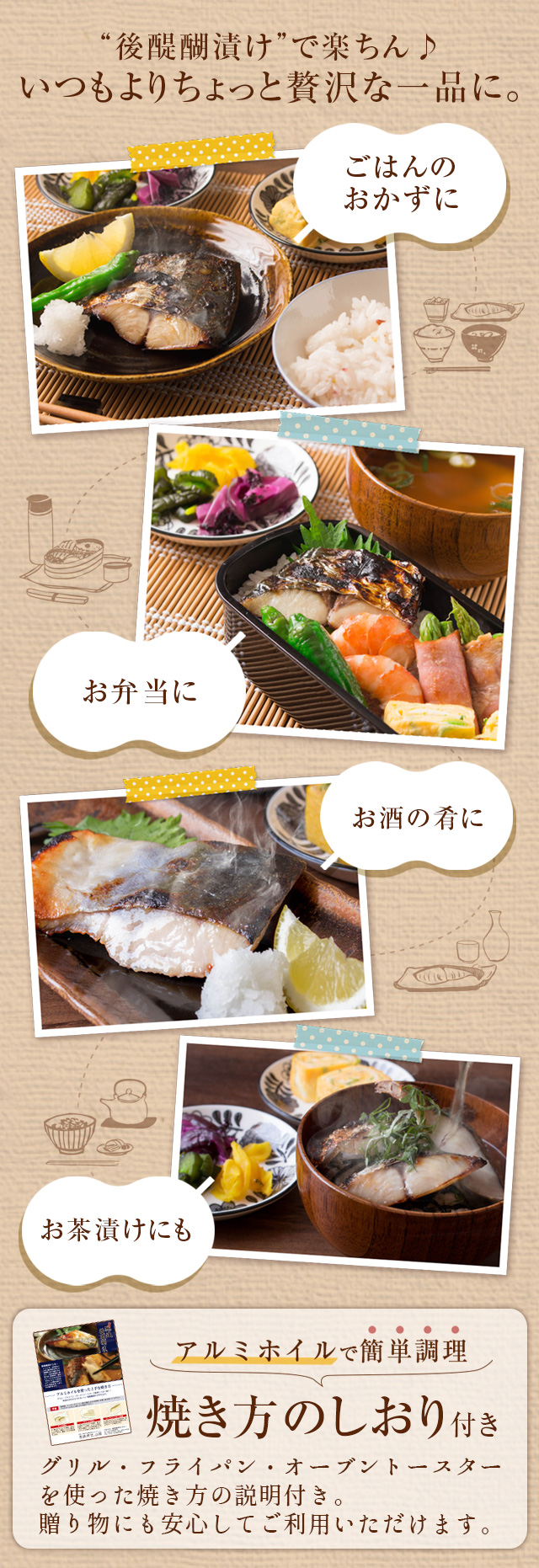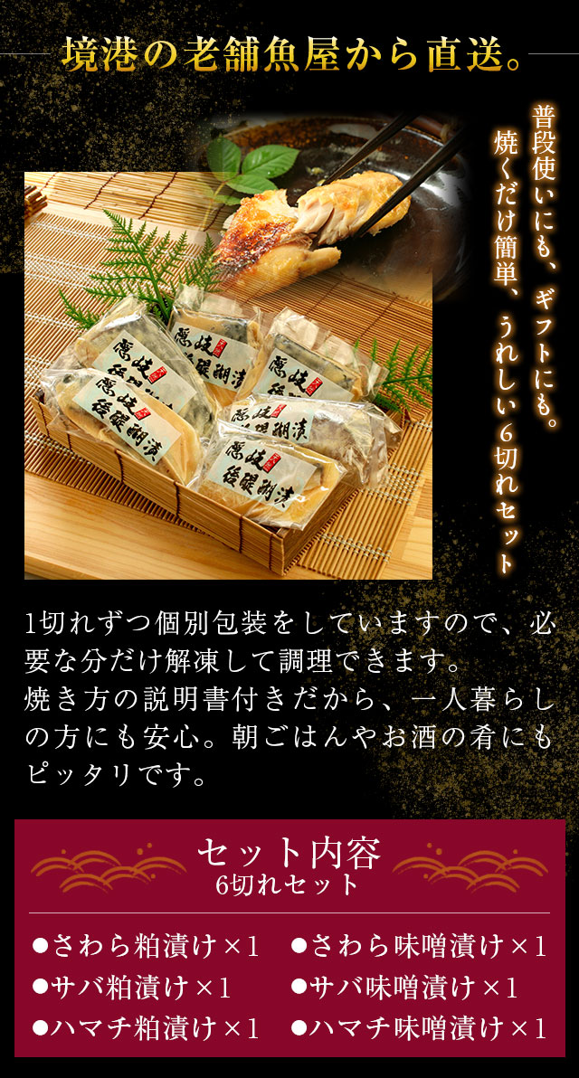 | 内容量 | 【粕漬け】約80g×3袋 【味噌漬け】約80g×3袋 |