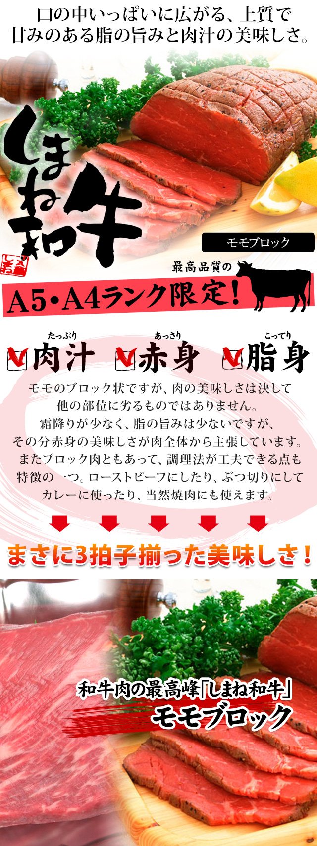 しまね和牛(島根和牛)モモブロック1kg 国産 牛肉 国産牛 和牛 黒毛和牛 最高級 特選 厳選 送料無料(北海道・沖縄を除く)