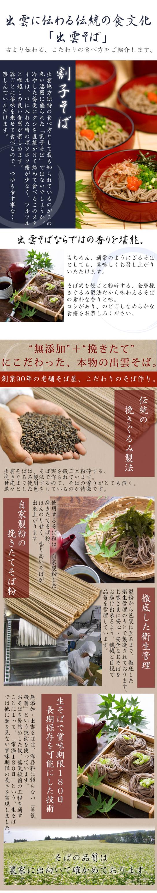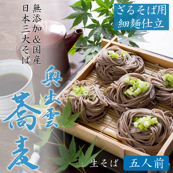 日本三大そばの一つ、出雲そばのざるそば用。喉越しの良い細麺仕上げです。コシと風味が存分に楽しめる、老舗そば屋こだわりの生そばはご自宅用としてはもちろん、ギフトとしても人気です。