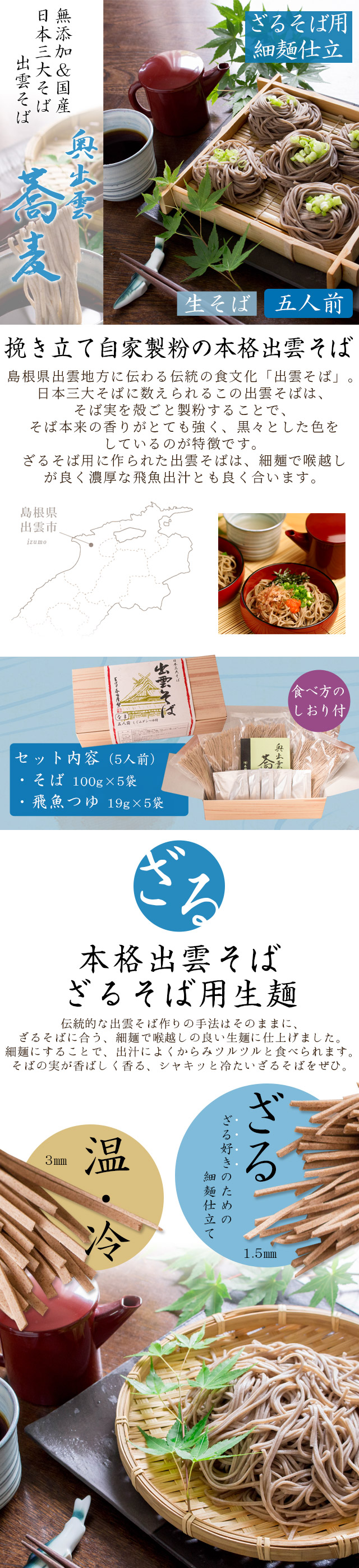お歳暮 ギフト 無添加 出雲そば5人前(ざるそば用生そば) 濃縮つゆ付き 出雲蕎麦 年越しそば 送料無料(北海道・沖縄を除く)
