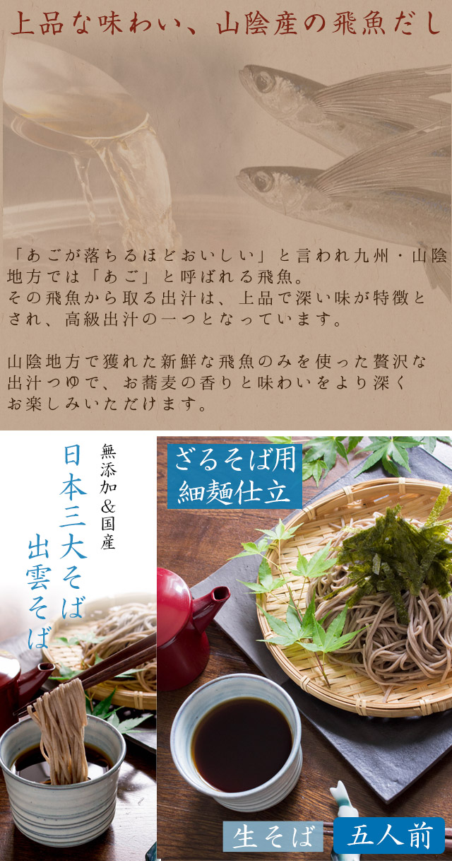 | 内容量 | 【そば】100g×5袋 【飛魚つゆ】19g×5袋 |