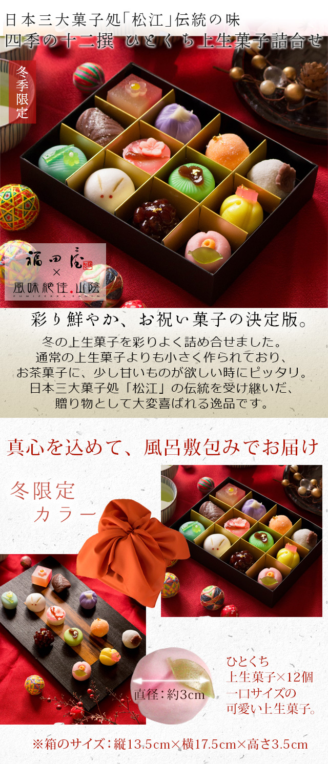 お歳暮 ギフト 冬季限定 四季の十二撰 ひとくち上生菓子詰合せ 和菓子 ギフト プレゼント 送料無料(北海道・沖縄を除く)