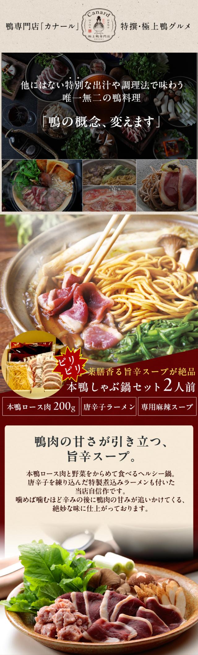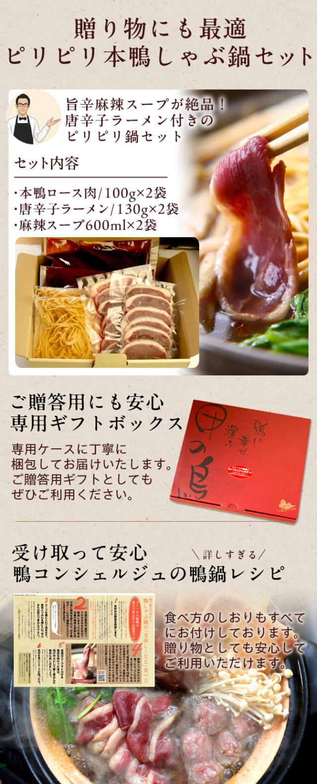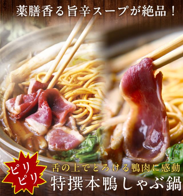 お歳暮 ギフト ピリピリ本鴨しゃぶ鍋2人前(唐辛子ラーメン付き) 鴨鍋 鴨鍋セット 鴨肉 ギフト 送料無料(北海道・沖縄を除く)