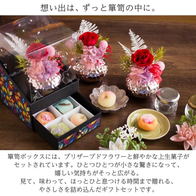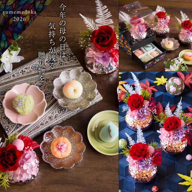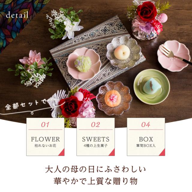 母の日 ギフト プレゼント 花とセット 花 スイーツ プリザーブドフラワー&ひとくち上生菓子セット「夢窓佳」 送料無料 和菓子 お菓子 食べ物 グルメ 2026 40代 50代 60代 70代 80代 90代 母の日 まだ間に合う