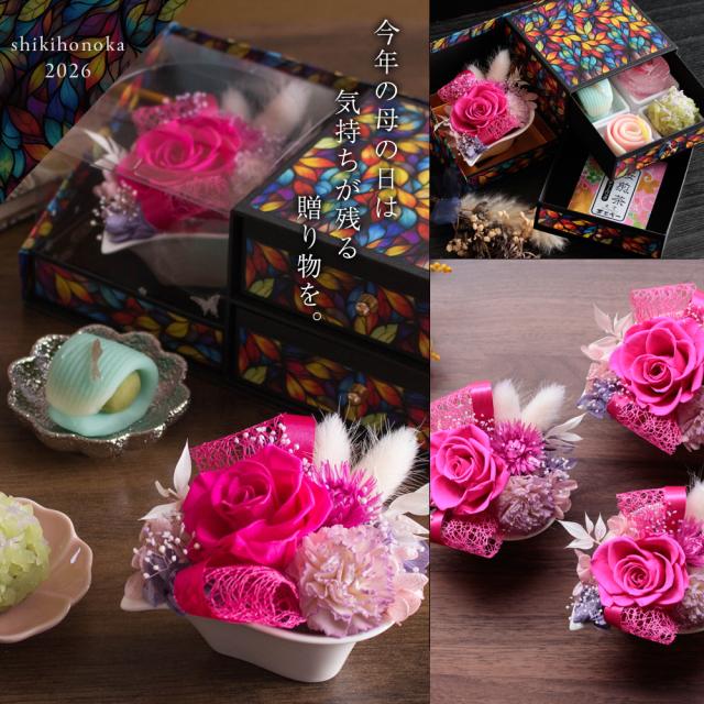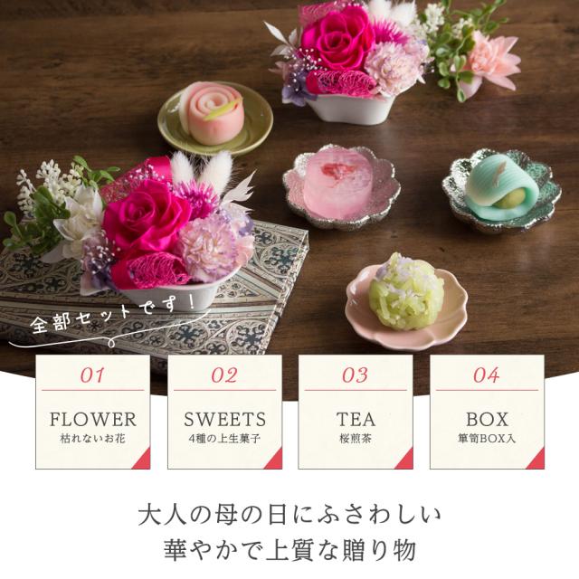 母の日 ギフト プレゼント 花とセット 花 スイーツ プリザーブドフラワー&上生菓子セット「四季穂」 送料無料 和菓子 お菓子 食べ物 グルメ 40代 50代 60代 70代 80代 90代 母の日 まだ間に合う
