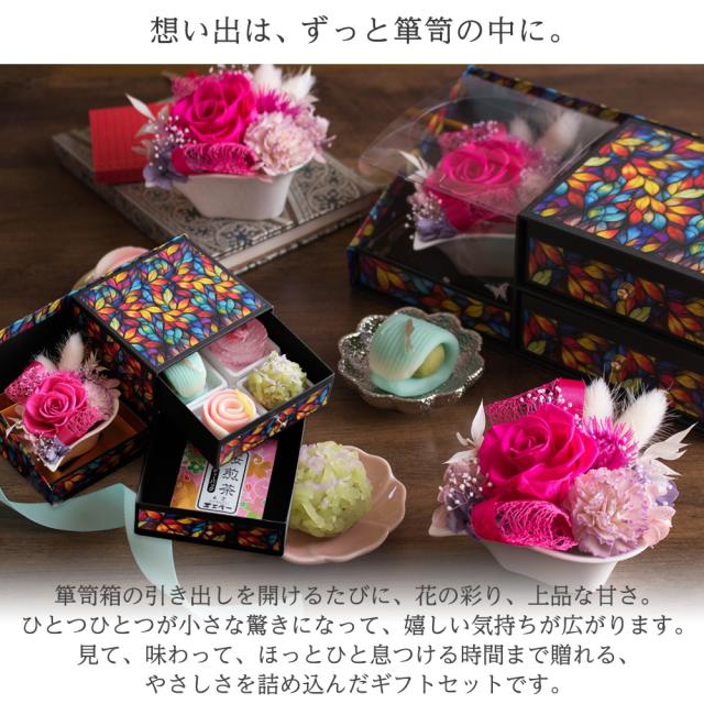 [母の日 敬老の日 ギフト プレゼント プリザーブドフラワー 和菓子 花 スイーツ お菓子 贈り物 セット ギフトセット]