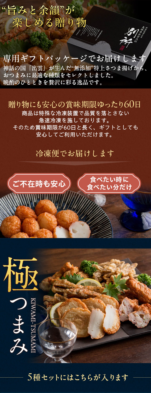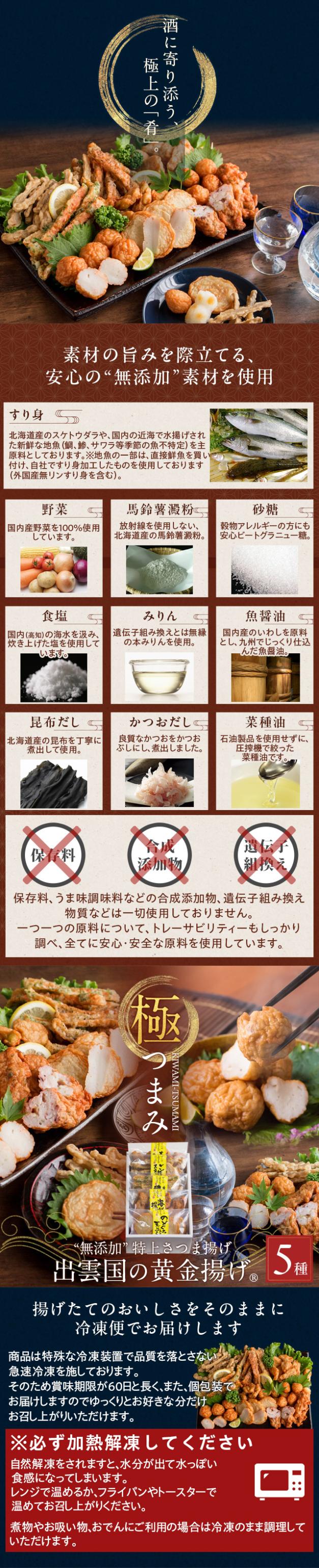 お歳暮 ギフト 【無添加】特上さつま揚げ「出雲国の黄金揚げ 極(きわみ)つまみ」5種詰合せ(のどぐろ天・海鮮揚げほか) おつまみ セット 薩摩揚げ 揚げかまぼこ 天ぷら ギフト 送料無料(北海道・沖縄を除く)