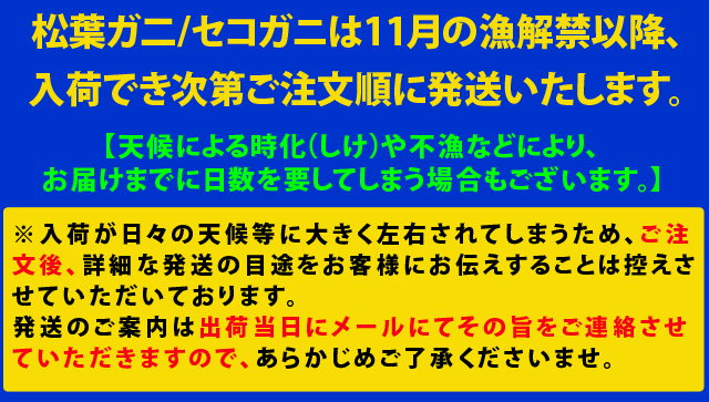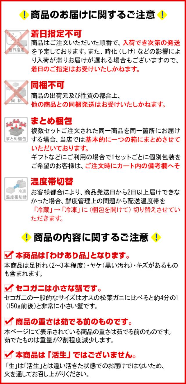 | 原材料名 | セコガニ(日本海産)、食塩(※茹でて発送時のみ) |