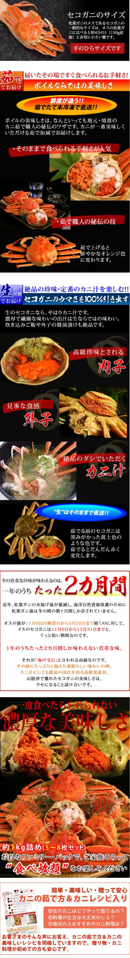 【返金保証付】茹で・生を選べる セコガニ(せこがに せいこがに)約1kg詰(5〜8枚入) 訳あり かに カニ 蟹 送料無料(北海道・沖縄を除く)