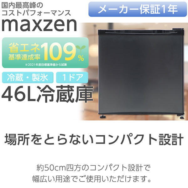 【メーカー直送】冷蔵庫 46L 小型 一人暮らし 1ドアミニ冷蔵庫 右開き コンパクト ガンメタリック MAXZEN JR046ML01GM