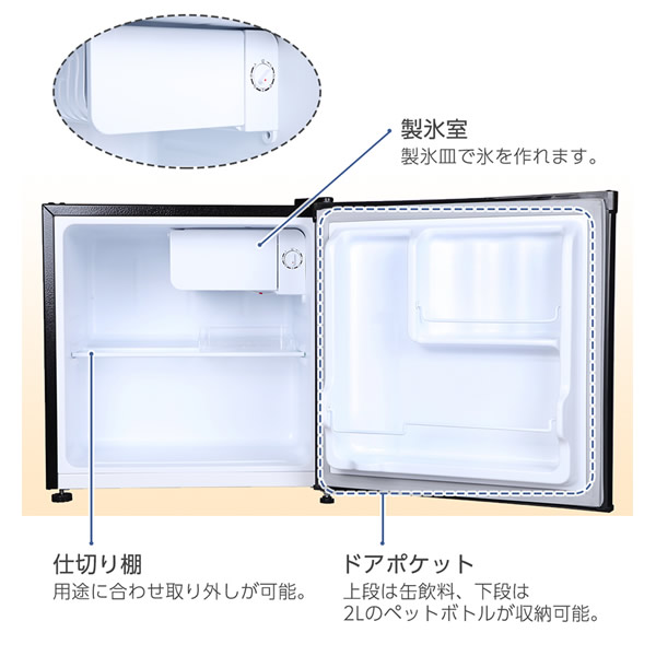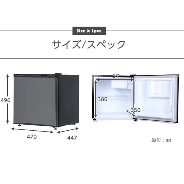 ■定格内容積:46L ■外形寸法:W470×D447×H496mm ■質量:15kg ■天板耐荷重:30kg ■年間消費電力量(50/60Hz):111kWh/年 ■冷却方式:直冷式(庫内温度調整ダイヤル付き) ■梱包サイズ:W514×D463×H530mm ■梱包質量:17kg ※記載は商品仕様の一部です。仕様説明不足等の理由での返品はできません。特に適合等は必ずご確認ください。