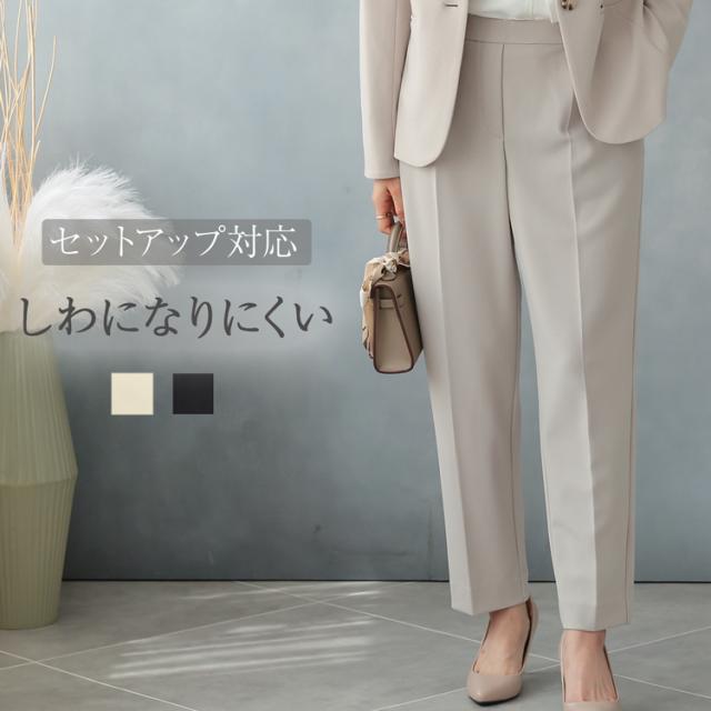 シワになりにくい テーパードパンツ レディース センタープレス パンツ ボトム テーパード 春 秋 セットアップ 可能 きれいめ ストレッチ ウエストゴム 無地 フォーマル セレモニー オケージョン オフィスカジュアル 白 黒 紺 M L LL 大きいサイズ シワにならないパンツ