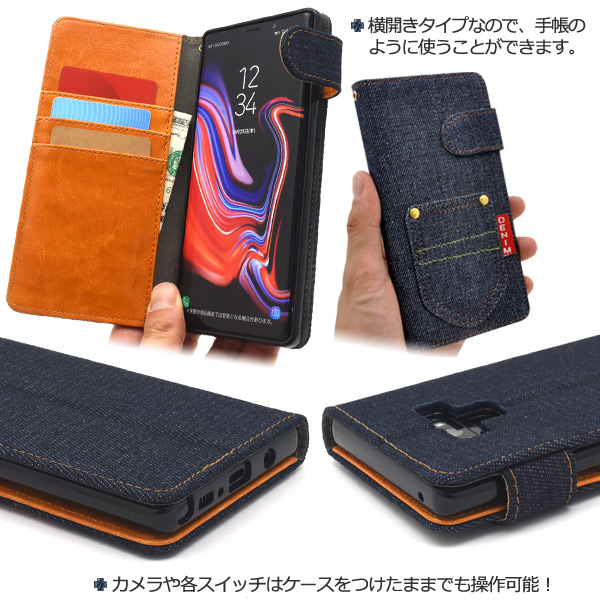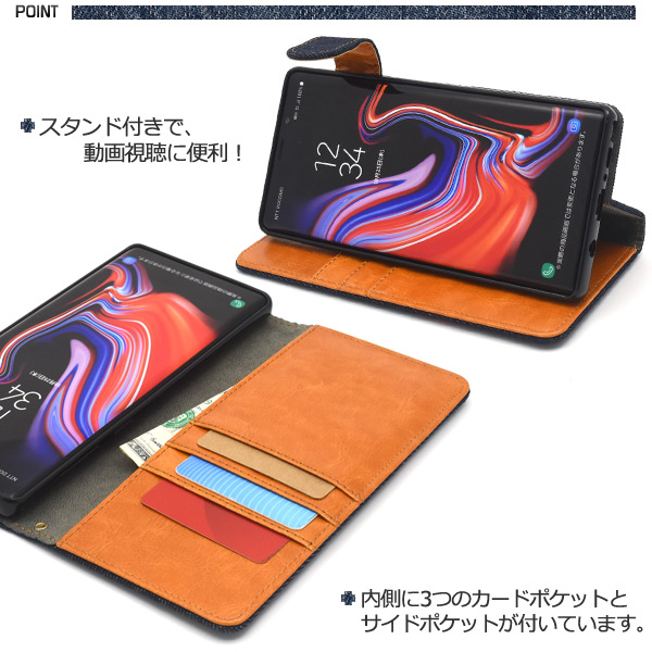 スマホケース Galaxy Note9 SC-01L SCV40用 手帳型 デニムデザイン 携帯ケース おしゃれ シンプル かわいい スマホカバー デニムケース ケータイケース 装着簡単 携帯カバー お洒落 カジュアル au携帯カバー auスマホ スマートフォンケース 定番 au docomo
