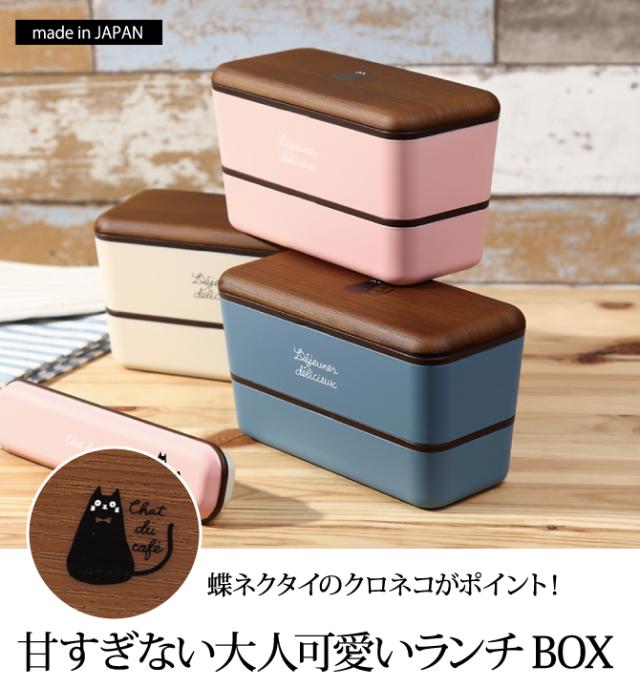 弁当箱 女子 レディース 女性用 2段 ランチボックス レンジ対応 食洗機対応 Chat du cafe 長角ネストランチ プラスチック製 樹脂製 日本製 ネコ 猫 グッズ ねこ キャット BPAフリー