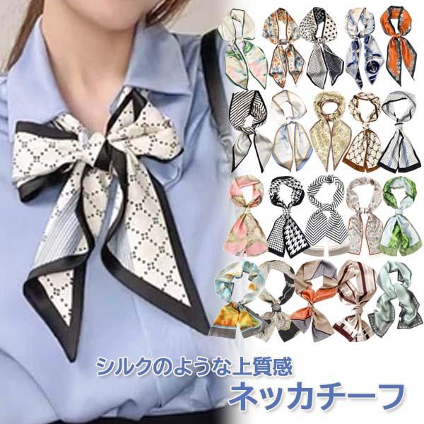 送料無料 1000円 ネッカチーフ シルク風 スカーフ 首元 ネックスカーフ レディース おしゃれ 首巻き とろみ素材 光沢 なめらか 細長 細スカーフ リボン風 i9muffler014