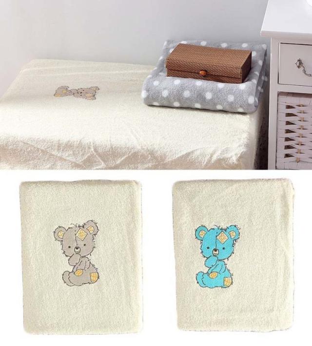 送料無料 1000円 ベビー用 ベットシーツ 赤ちゃん用 小さいサイズ タオル生地 シンプル くま柄 全2色 ベージュ スカイ i3baby001