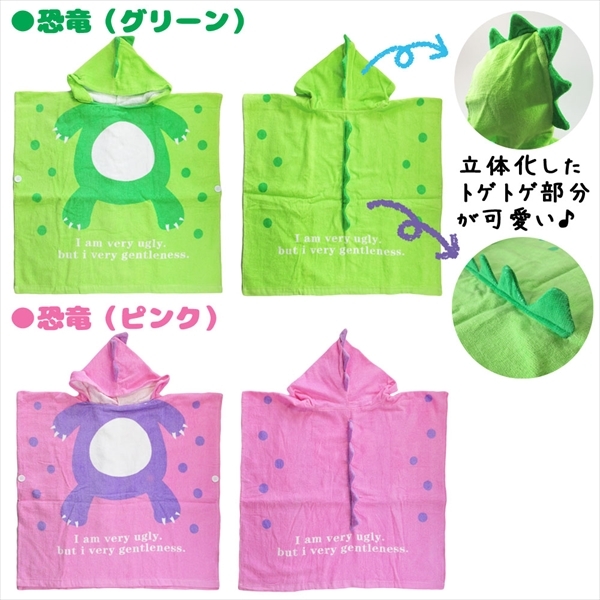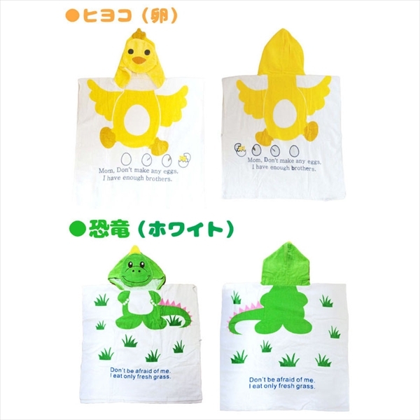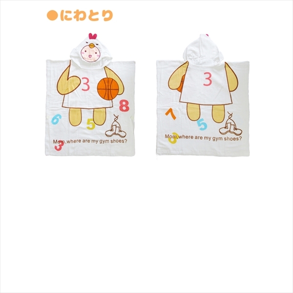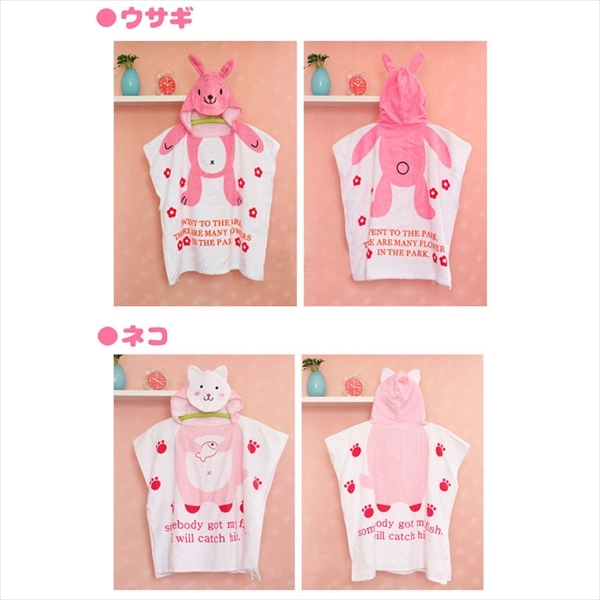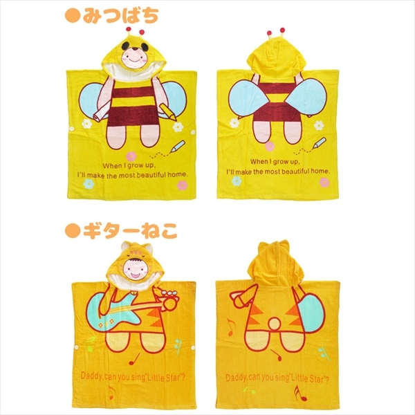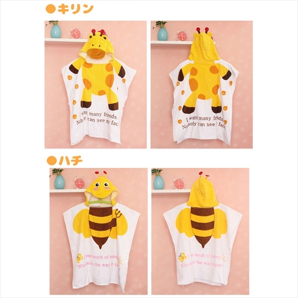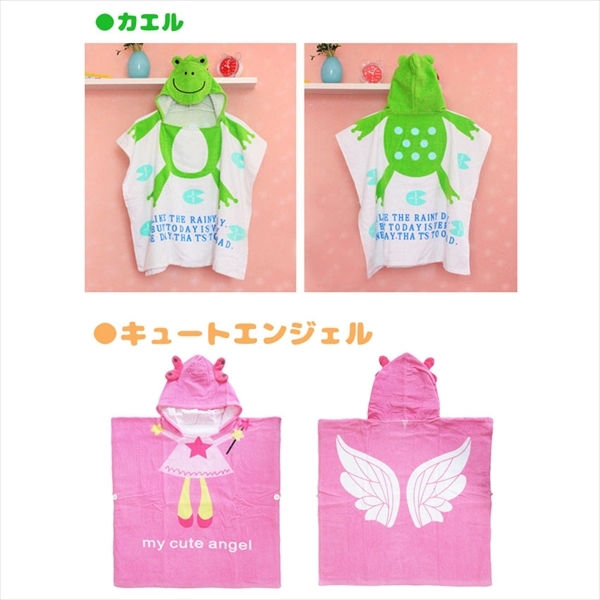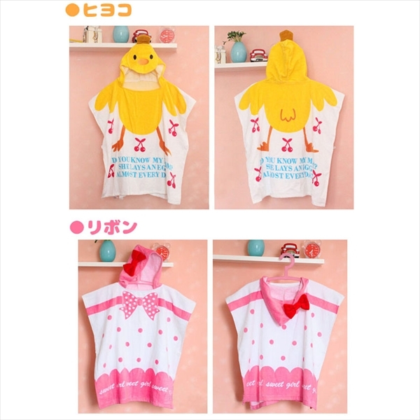 - とても可愛くて肌触りも良いのでリピートです。年長の娘用です。お気に入りのポンチョだと、お風呂上がりに自分で拭いて着替えてくれます。自立に繋がり重宝してます!