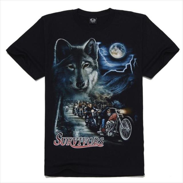 送料無料 1500円 訳あり 在庫処分 Tシャツ 半袖 メンズ レディース 狼 バイク ウルフ かっこいい 綿100% 3Dプリント ブラック 黒 i2tshirts004