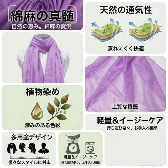 柔らかく優しい肌触りで、日よけや冷房対策、春秋の少し寒い時の羽織物などにぴったりです。
