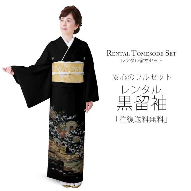 レンタル 黒留袖 フルセット 貸衣装 着物【卒業式 七五三 結婚式 お宮参り 貸衣装】【往復送料無料】 五三桐