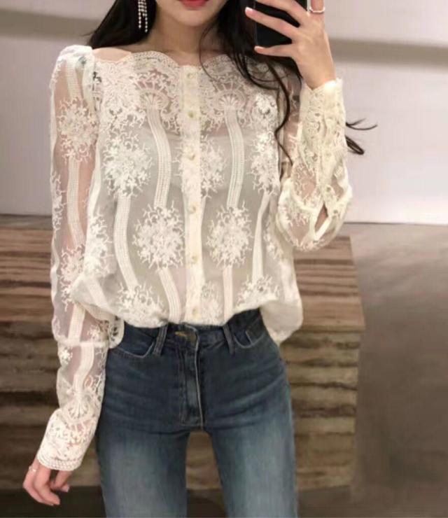シャツ ブラウス 総レース オフショル 花柄 着痩せ 刺繍 フェミニン 大人可愛い 春夏 レトロ ベージュホワイト ブラック 黒