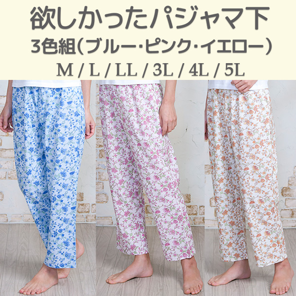 ・夏のパジャマは下だけで充分!洗い替えに便利な3色組!
