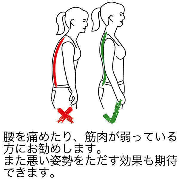 ・腰部に伸縮ベルトが腰をサポート。自分の好み合わせて装着出来ます。腰を痛めたり、筋肉が弱ている方にお勧めします。また、悪い姿勢をただす効果も期待できます。