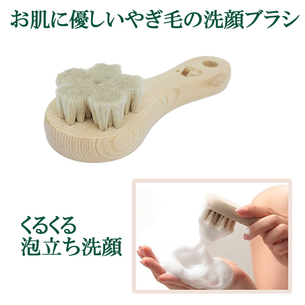 洗顔ブラシ:毛=やぎ毛、持ち手=天然木(ひのき)