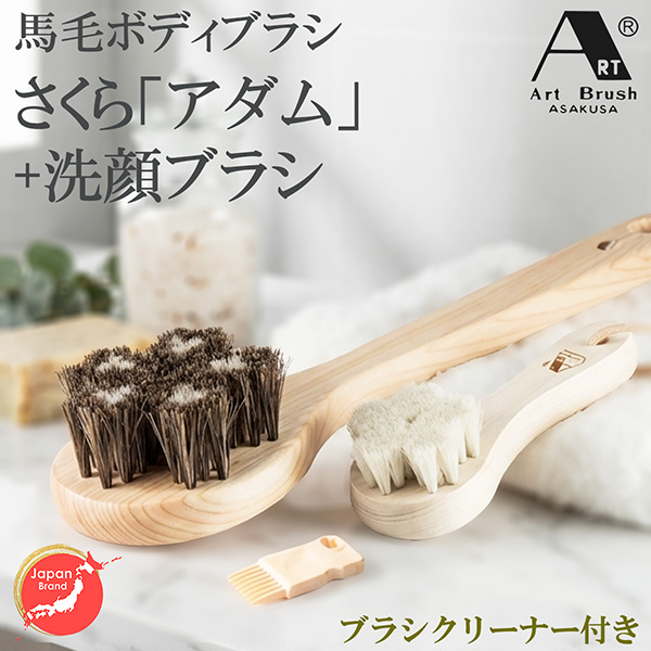 馬毛ボディブラシ・さくら「アダム」+洗顔ブラシ(ブラシクリーナー付)